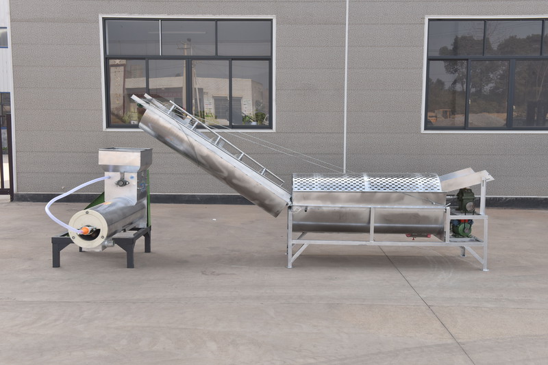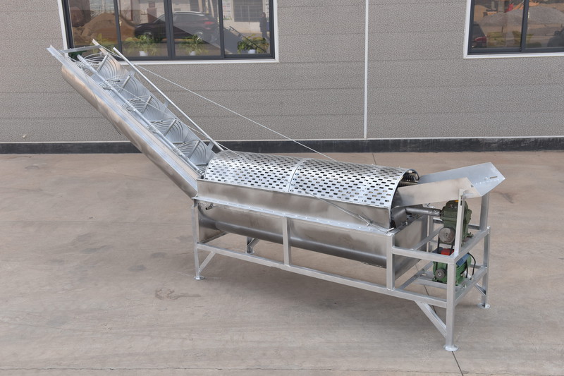 適用于紅薯,土豆等作物特點:1.內置毛刷,清洗后再次噴淋 清洗效果更好2.省時省力,節(jié)約用水工作效率:1000-1500kg/h左右4米不銹鋼款洗薯上料機+1500型不銹鋼淀粉分離機